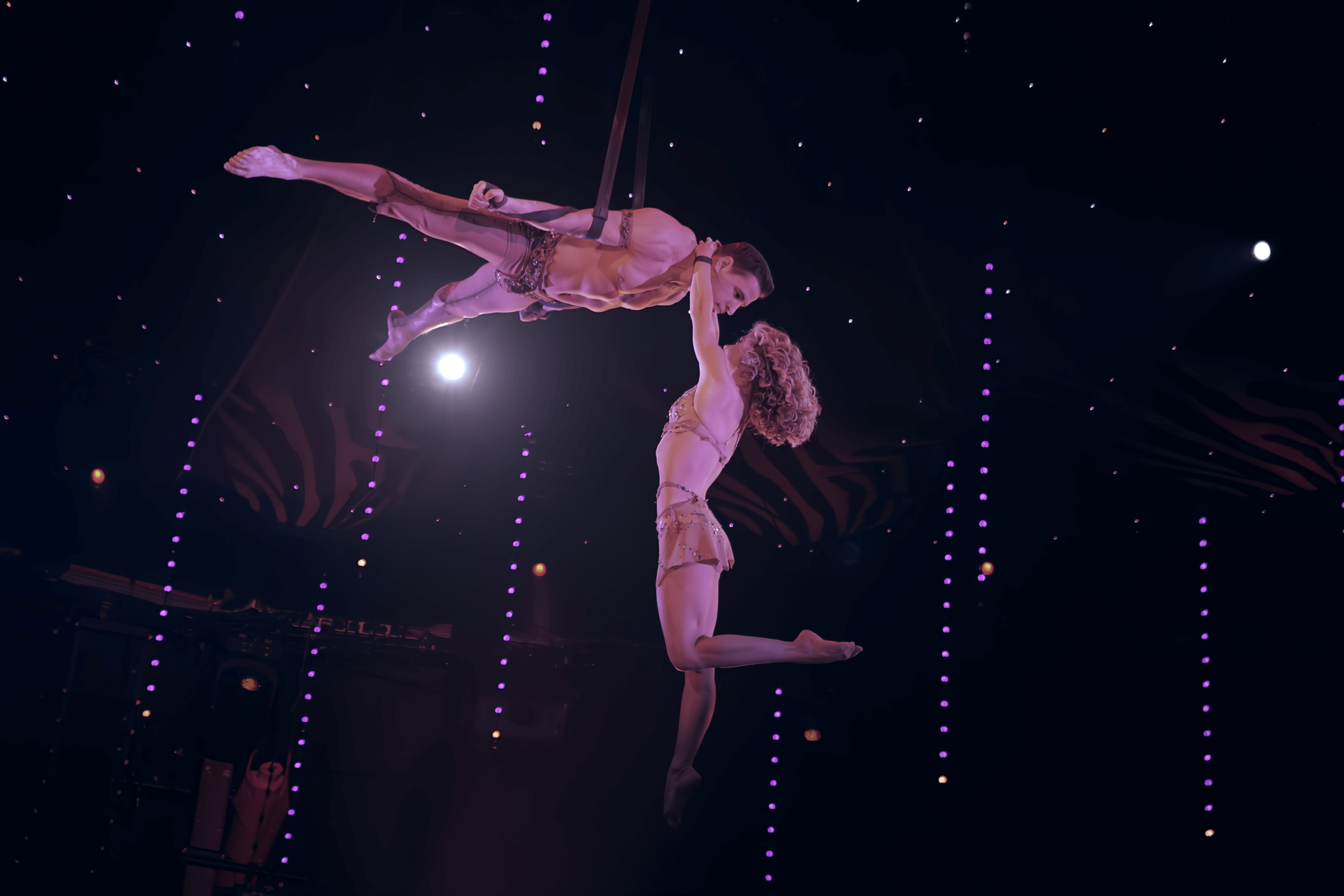 Das Duo Artur & Esmira begeistert mit zwei hochkarätigen Luftakrobatik-Acts: kraftvoll und dynamisch an den Strapaten sowie anmutig und scheinbar schwerelos am Luftring. Mit einer außergewöhnlichen Mischung aus Geschwindigkeit, Eleganz und präziser Technik erschaffen sie Momente, in denen Körperkunst und Emotion zu einem unvergesslichen Erlebnis verschmelzen.