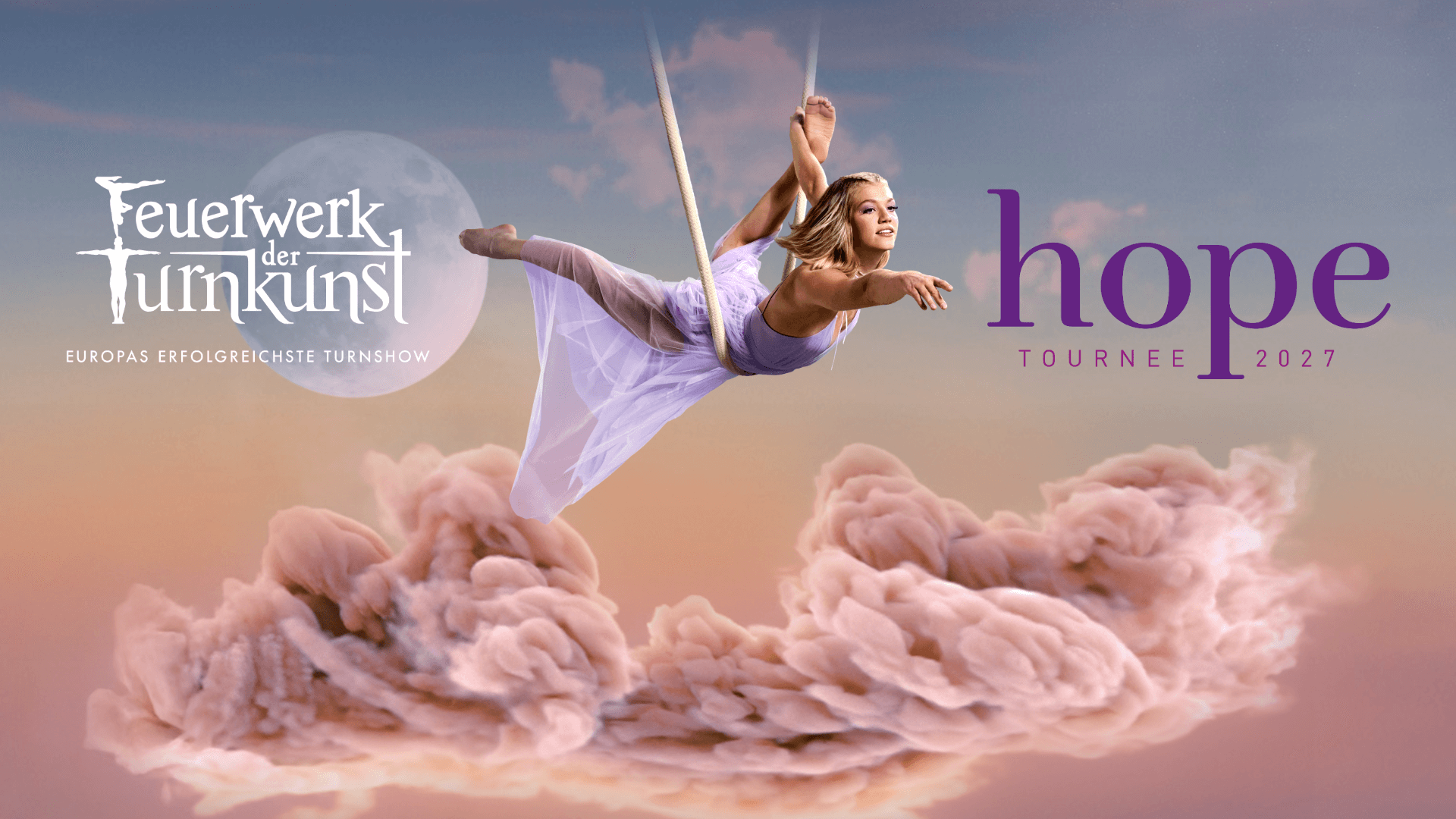 Darauf kannst du dich freuen: Eine Welt ohne Grenzen und voller Momente, die nur darauf warten, gelebt zu werden. Genau dorthin wird dich hope entführen. Lass dich von einer Atmosphäre tragen, die Zuversicht, Unbeschwertheit und Leidenschaft ausstrahlt. Kraftvolle Bewegungen am Boden treffen auf fliegende Leichtigkeit in der Höhe; Dynamik und Schwerelosigkeit verschmelzen zu einem mitreißenden Erlebnis.
