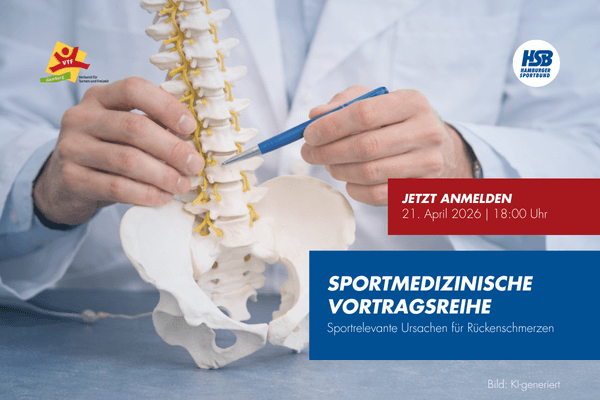 Weiterhin nur 10 Euro kostet die Teilnahme an der Fortbildung der Sportmedizinischen Vortragsreihe von HSB und VTF. Am 21.4.2026 ist es Zeit für den vierten Teil – diesmal geht es um Rückenschmerzen. Erneut wird aktuelles Wissen der Sportmedizin wie Anatomie, Verletzungsprophylaxe und Regeneration kompakt und verständlich vermittelt. Die Fortbildung fokussiert sich darauf, welche typischen Ursachen hinter Rückenschmerzen stehen können und wie Trainer*innen im Trainingsalltag präventiv und unterstützend handeln können.